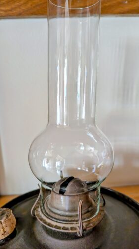 The glass chimney rises above it all—clear, simple, and quietly elegant. Its form softens the sturdy base below, bringing balance to the piece. Together, they create a silhouette that is both practical and unexpectedly graceful.
