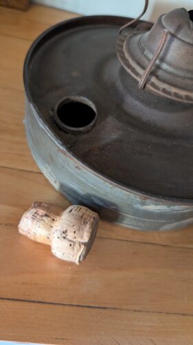 Even the cork stopper reveals a thoughtful hand. Shaped for a firm fit, it hints at care—perhaps to keep precious fuel from spilling or evaporating. These small considerations remind us that objects once held value not only in their making, but in their keeping.