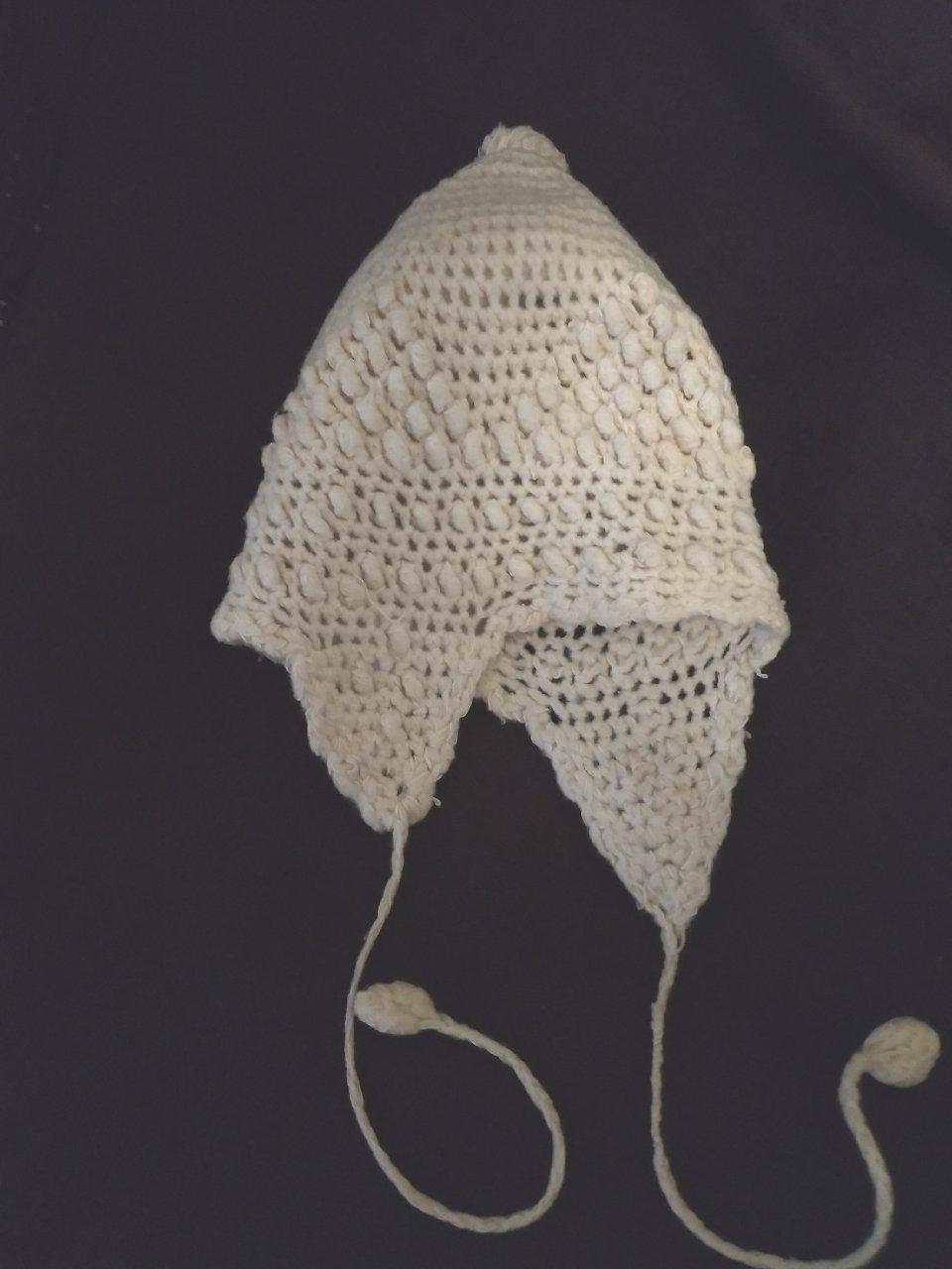1920s Child Wool Bonnet Vintage Baby Hand Knit Off White