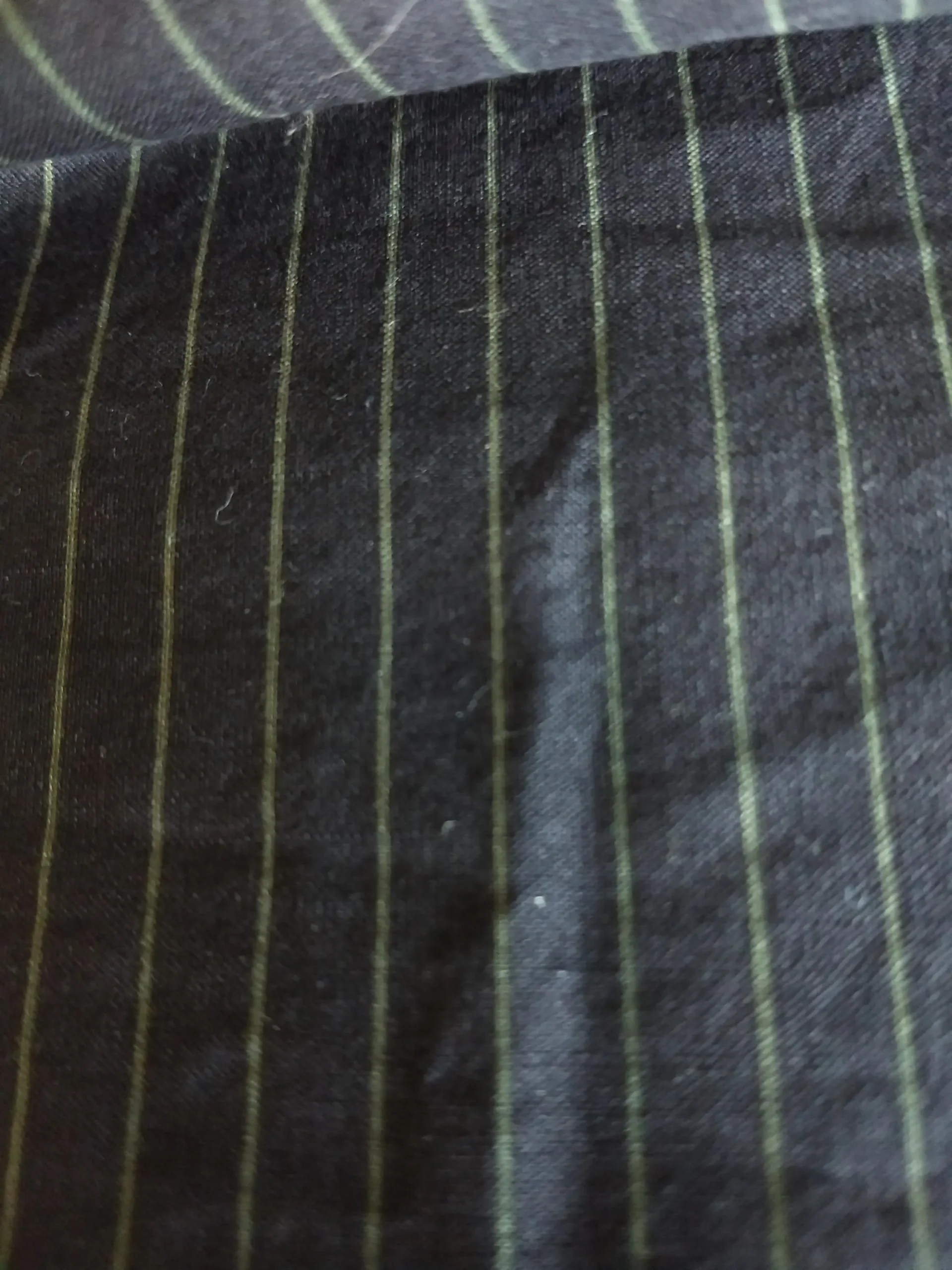 Here’s a nice old cotton fabric remnant in unused condition from the vintage years of the 1920’s, perhaps a bit earlier. It is a cotton in a midnight blue with a tiny pin stripe of a olive green color yardage.