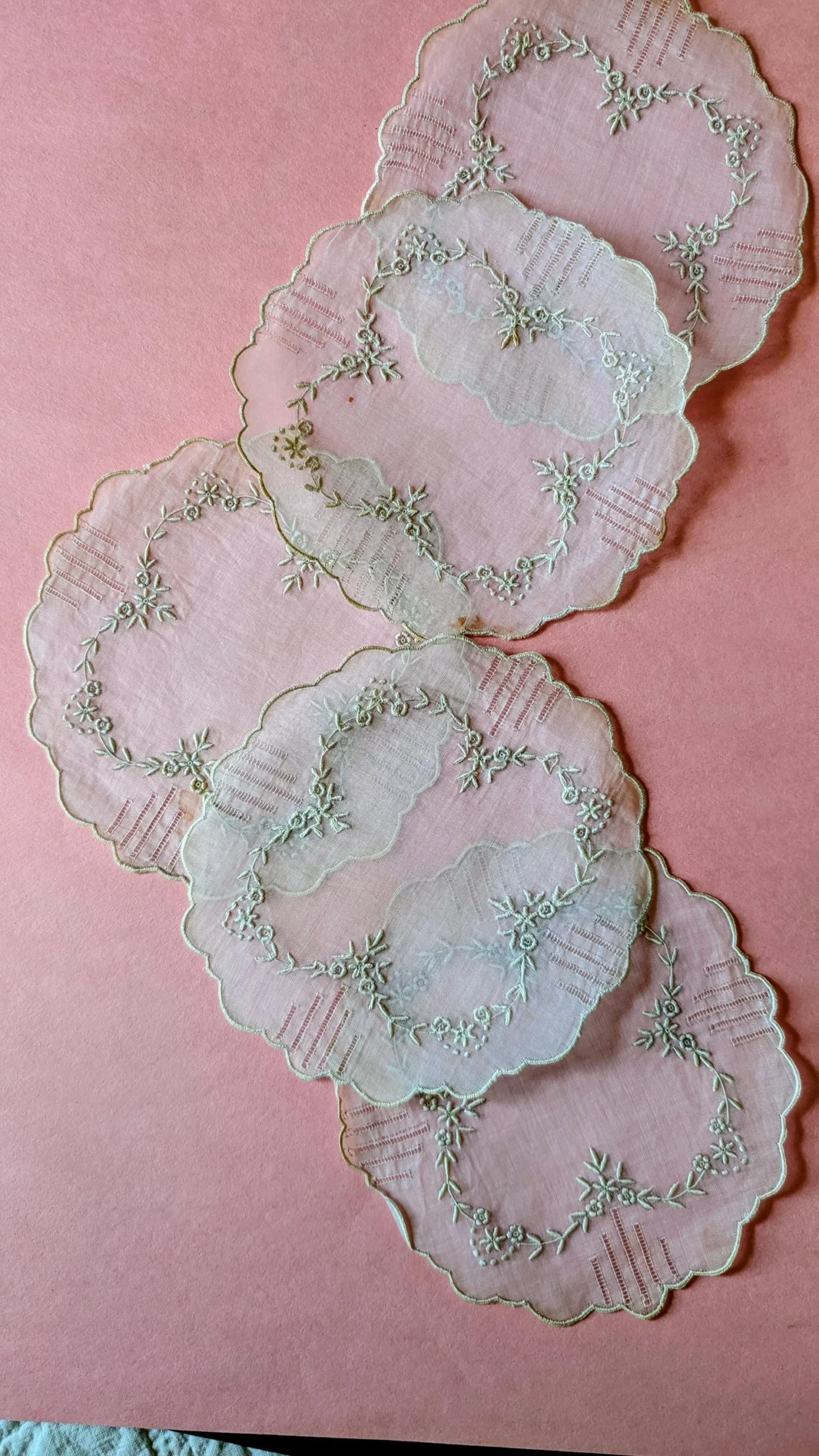 5 Vintage Doilies Madeira Sheer Doily Embroidery Scallop Edge 1930s