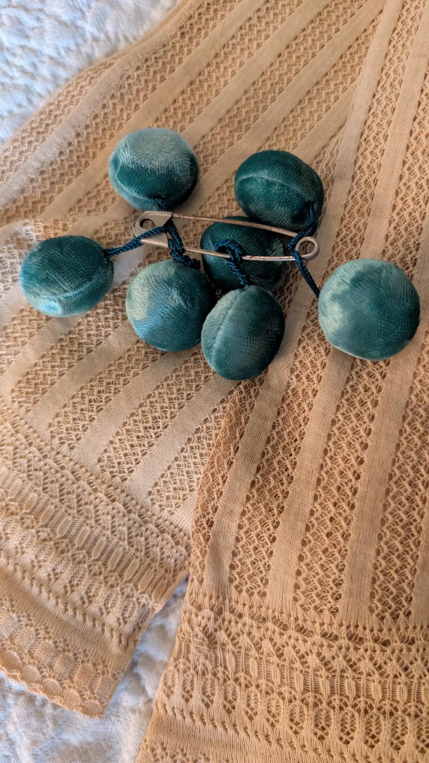 Antique seven velvet ball trim embellishments for costuming, clothing or furnishing trim. Dating from the Edwardian era, the color of the balls are in a pretty shade of blue.