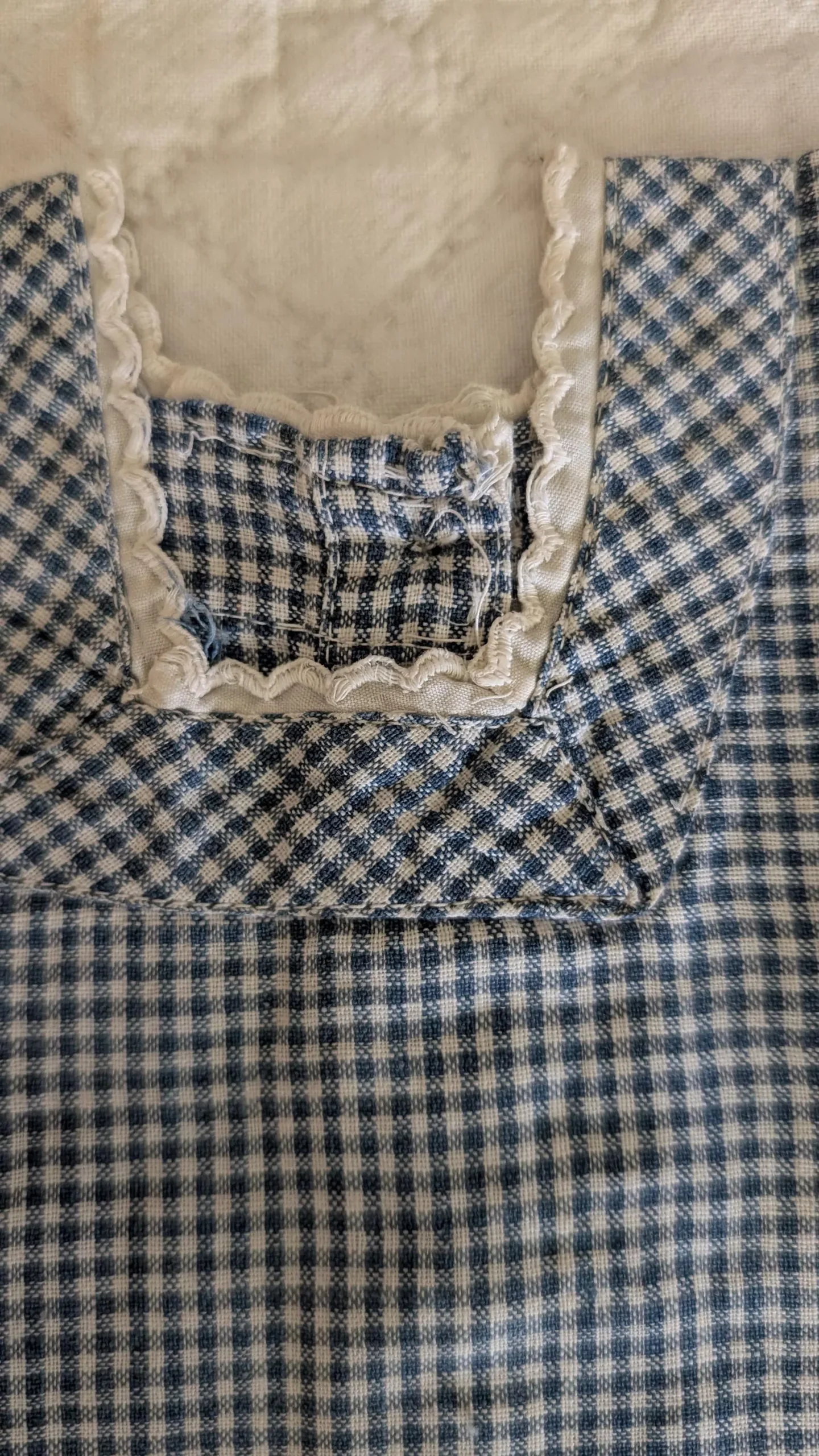 Doll Dress Homespun Blue White Check Fabric 1900’s 1920’s Home Sewn