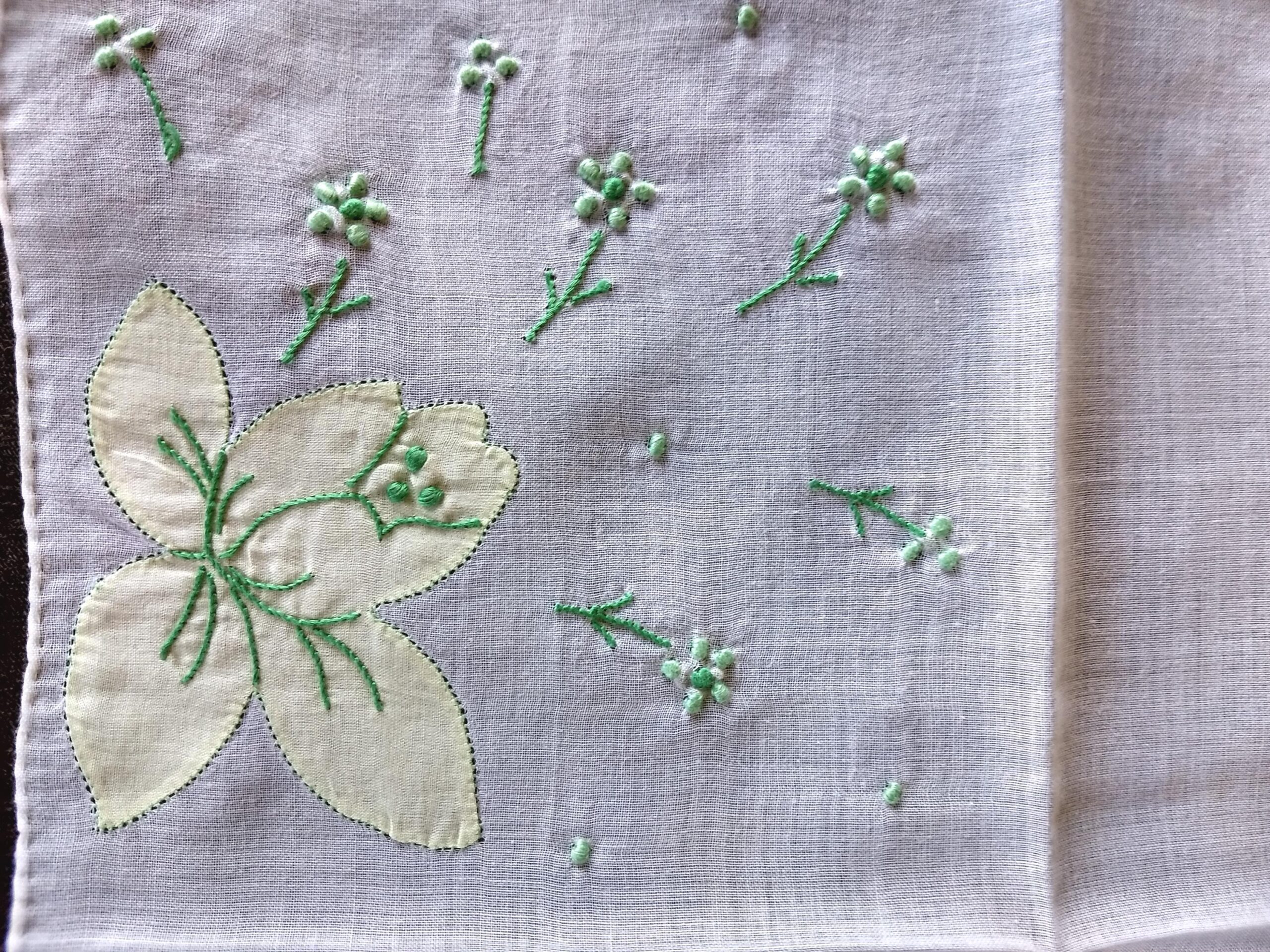 Madeira Applique Embroidery Hanky Green Yellow Flowers Handkerchief