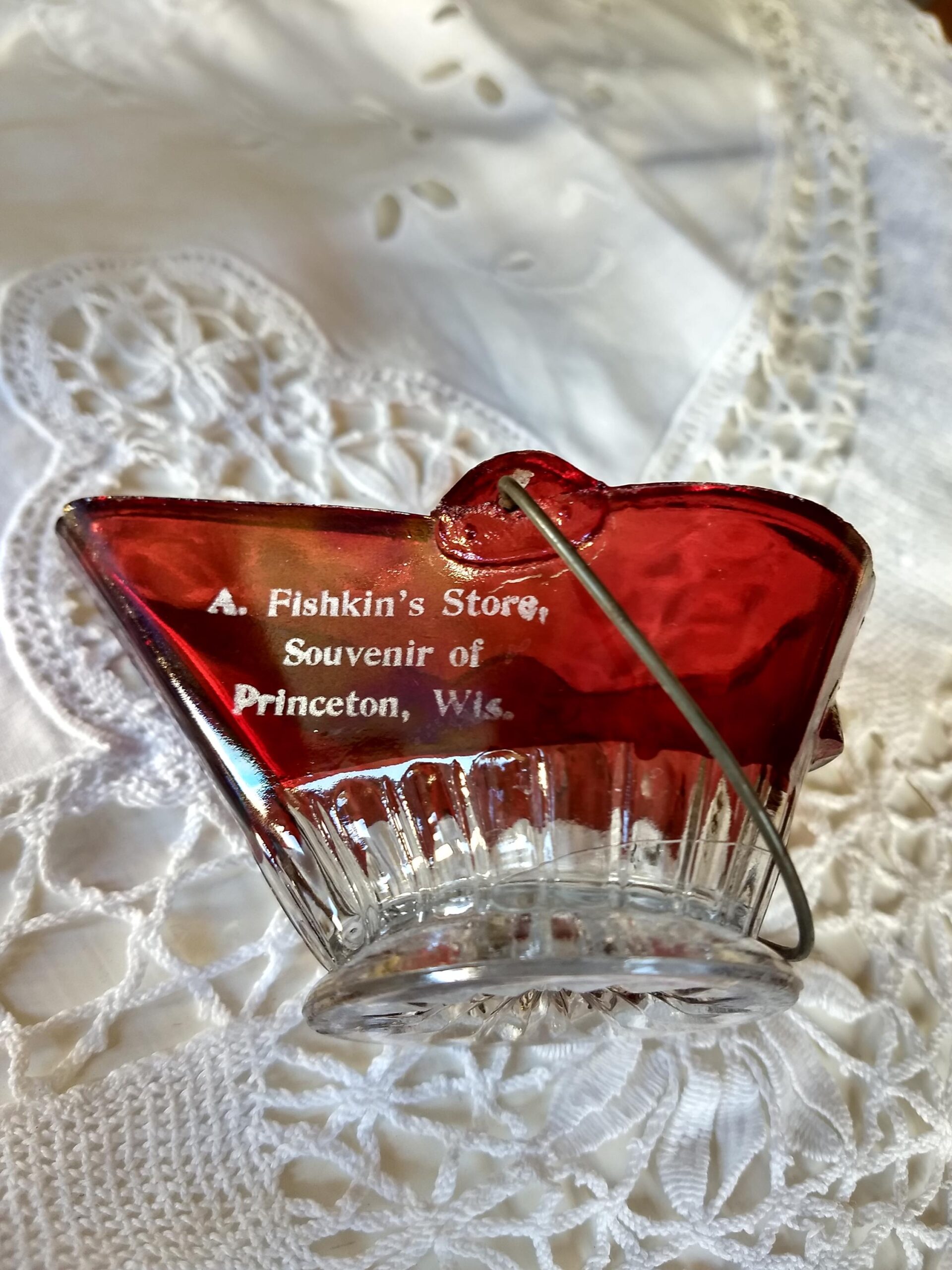 Victorian 1890 Ruby Red Flash Glass Coal Scuttle Match Holder Princeton Wisconsin