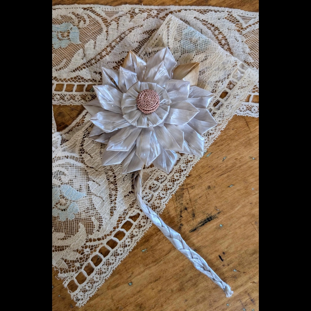 Wanting something unique for your next creation? This vintage handmade raffia flower may just be your inspiration. Dating from the vintage years of the 1940’s or perhaps 1950’s, the piece seems to be nicely made.